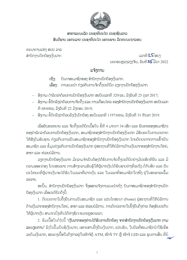 ເງິນຝາກປະຈໍາແບບແຈ້ງກ່ອນລ່ວງຫນ້າ 1 ວັນ ແລະ 7 ວັນ