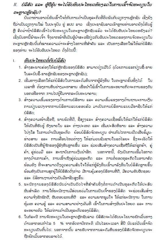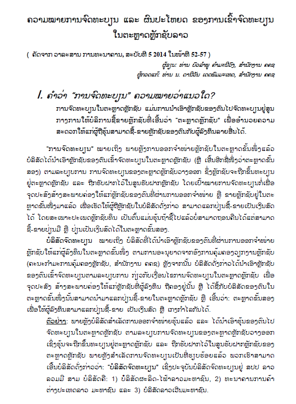 ຄວາມໝາຍການຈົດທະບຽນ ແລະ ຜົນປະໂຫຍດ ຂອງການເຂົ້າຈົດທະບຽນໃນຕະຫຼາດຫຼັກຊັບລາວ